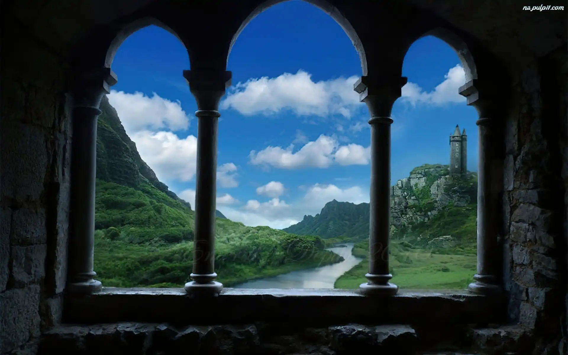 Chmury, Wzgórze, Zamek, Okno, Rzeka Na Pulpit