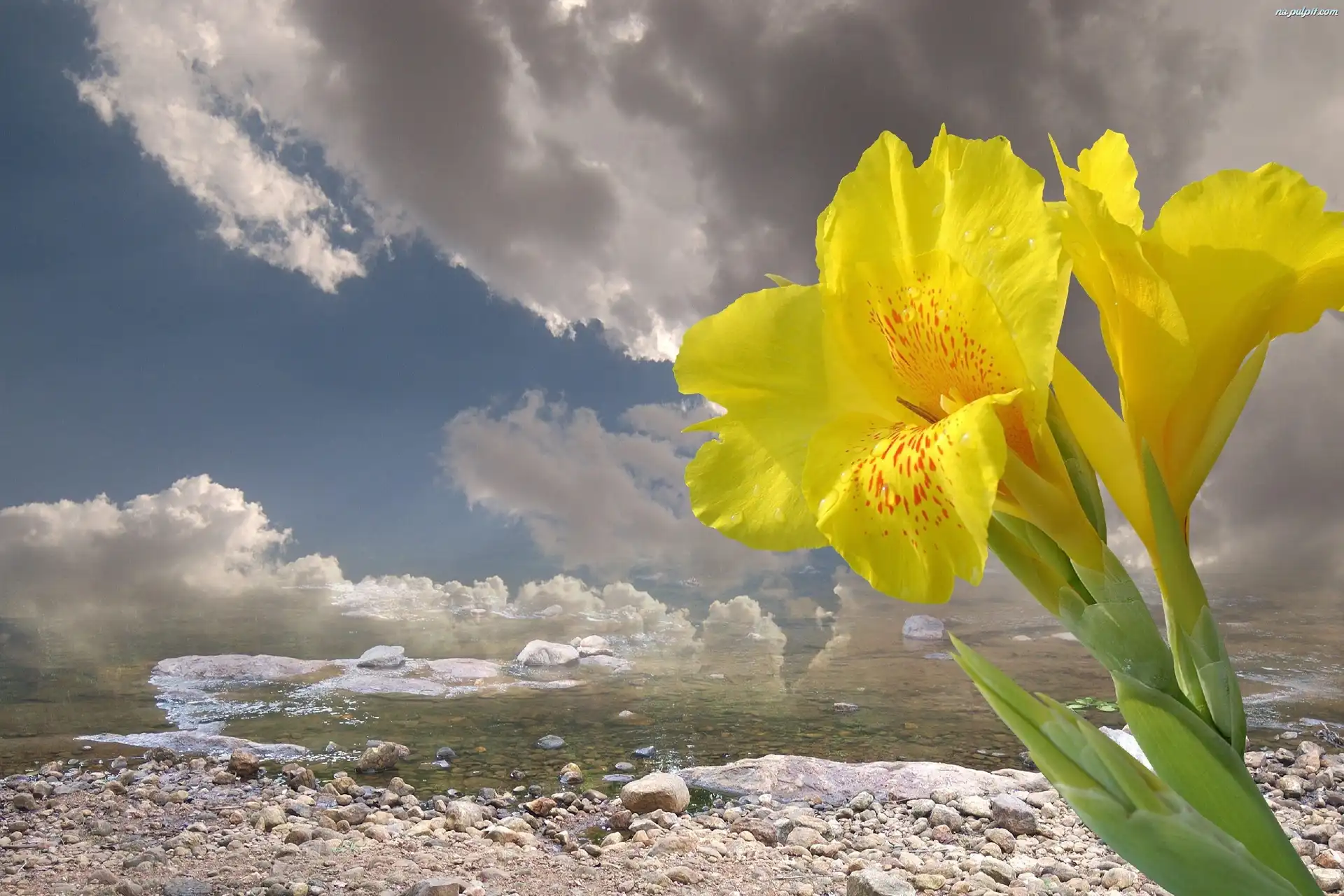 Chmury, Irys, Żółty, Morze Na Pulpit