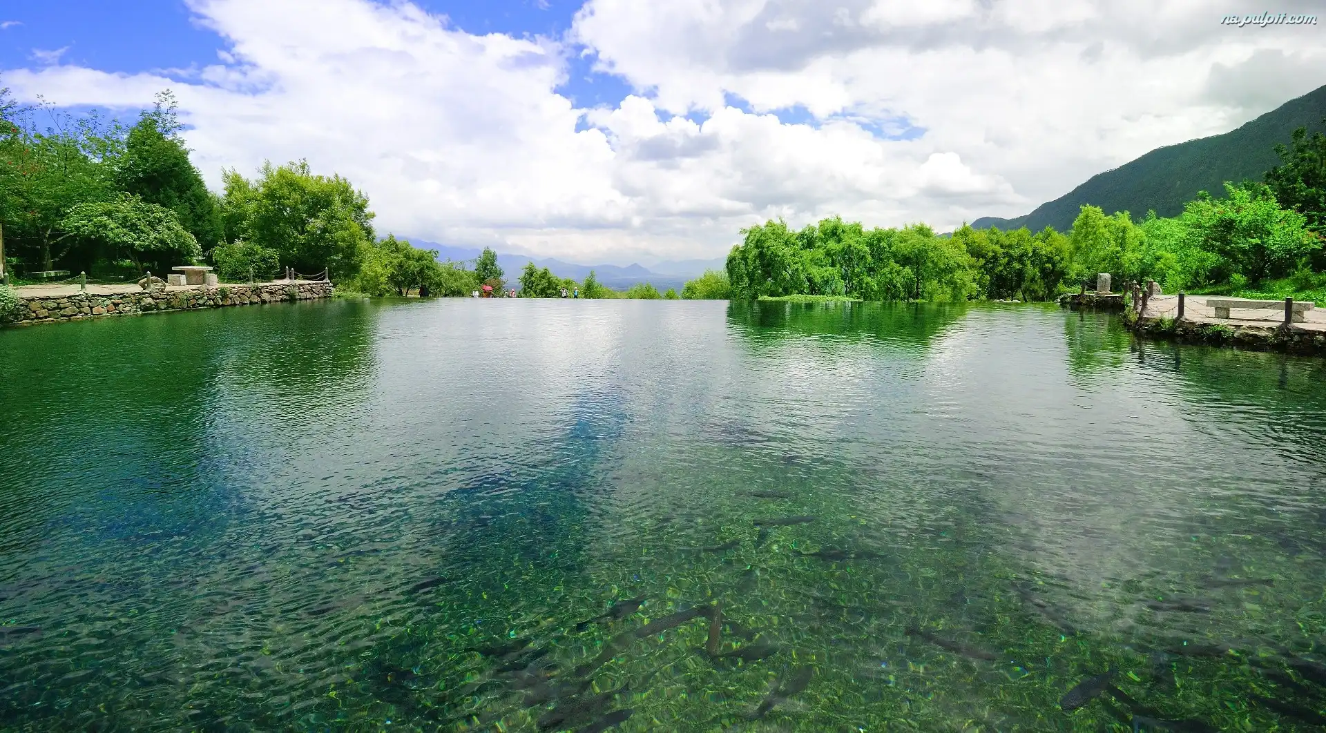 Chmury, Jezioro, Piękne, Drzewa Na Pulpit