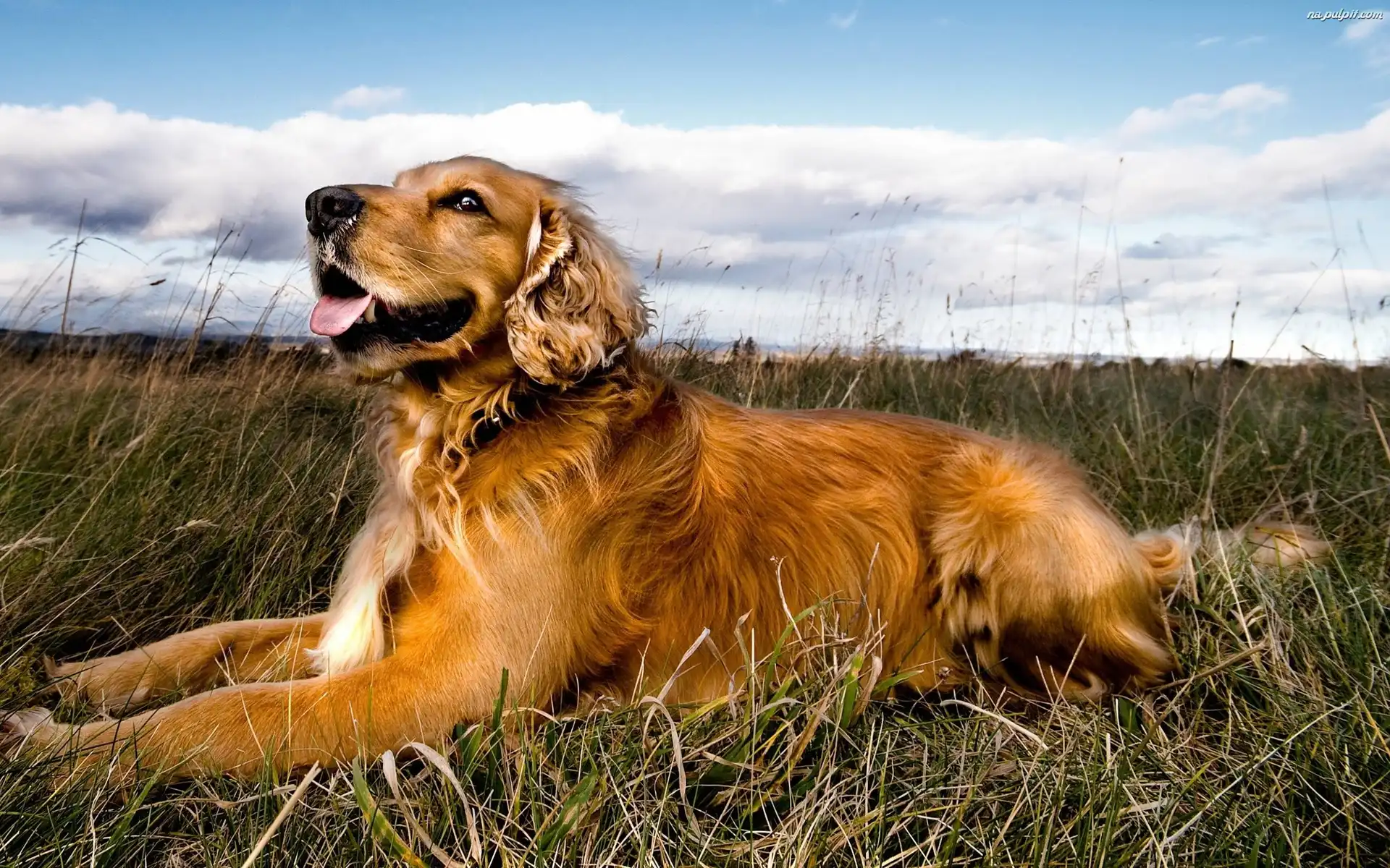 Chmury, Trawa, Golden Retriever, Pies, Niebo Na Pulpit