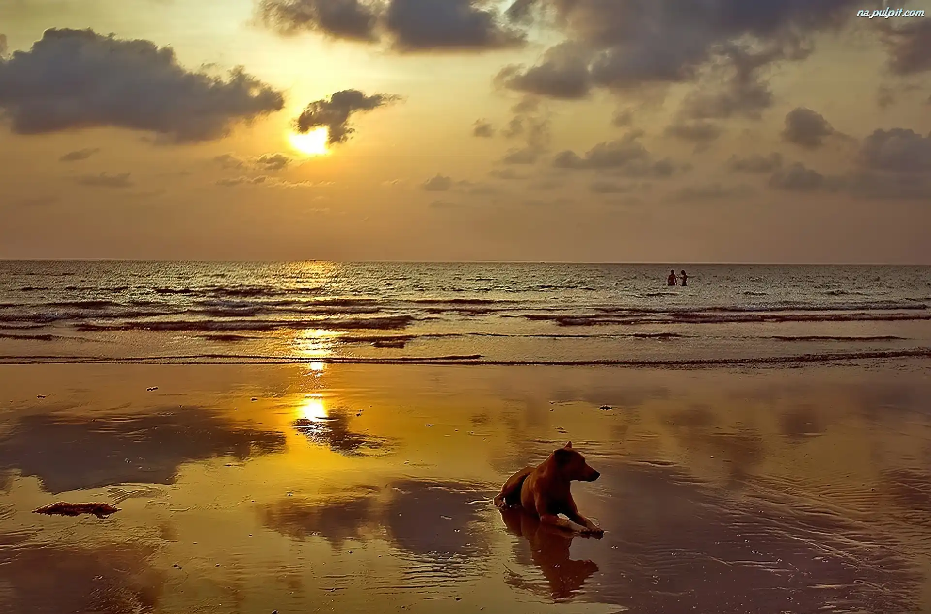Chmury, Fale, Morze, Pies, Plaża Na Pulpit