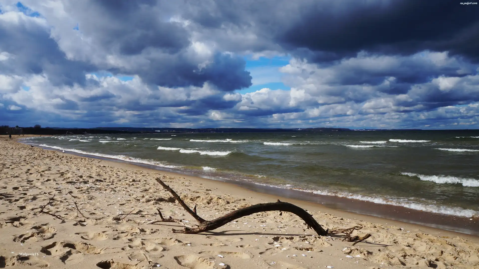 Chmury, Fale, Morze, Plaża, Piasek