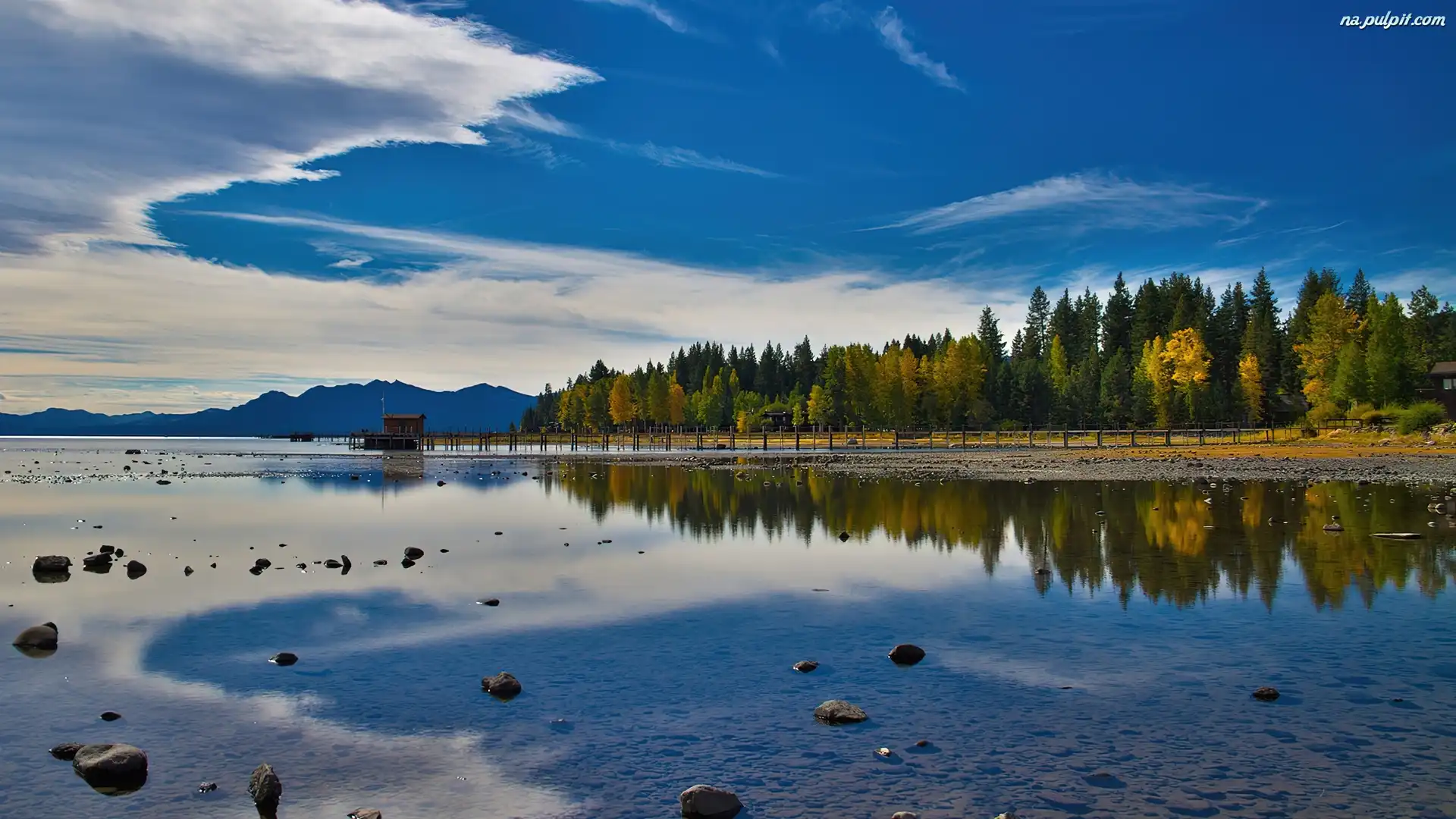 Chmury, Jezioro, Płytkie, Las Na Pulpit