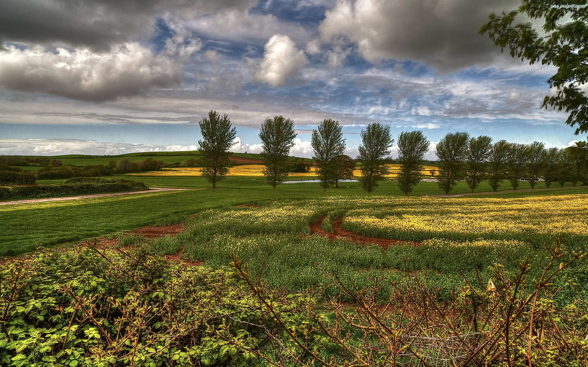 Chmury, Łąki, Pola, Drzewa Na Pulpit