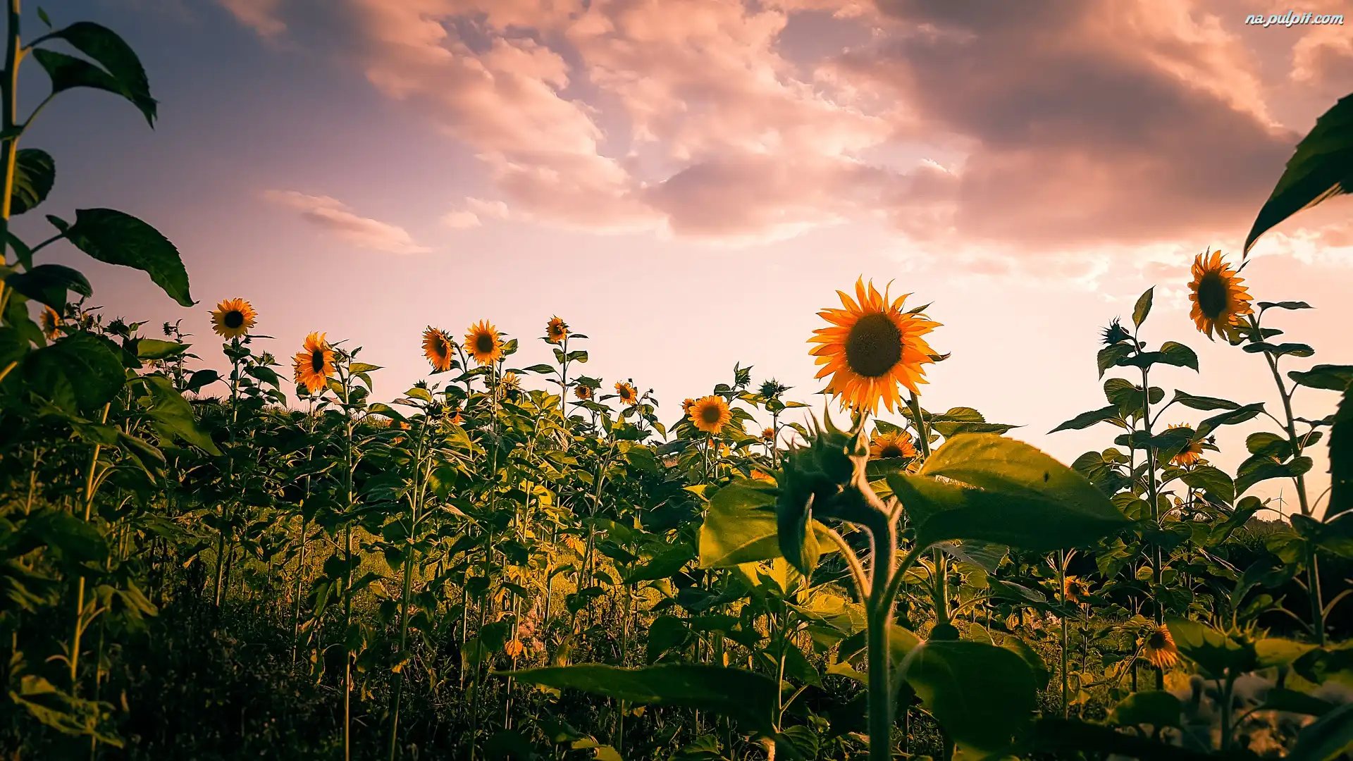 Chmury, Dojrzewające, Pole, Słoneczniki