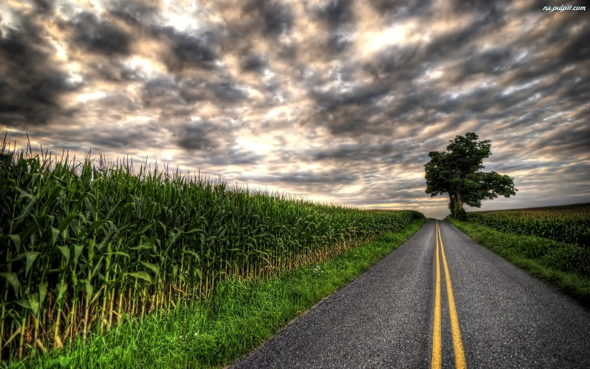Chmury, Droga, Kukurydza, Pole, Drzewo Na Pulpit