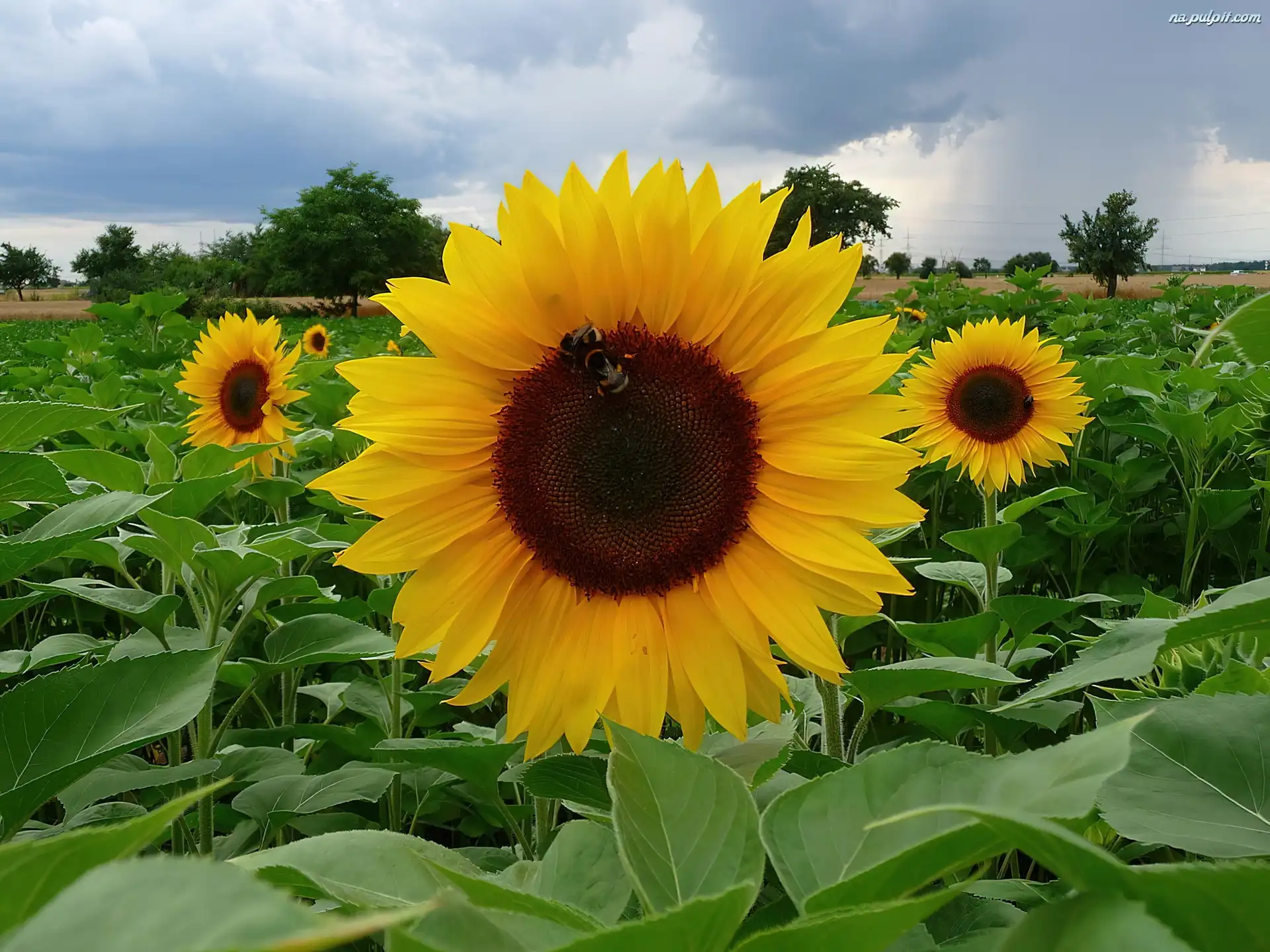 Chmury, Słoneczników, Pole, Drzewa Na Pulpit