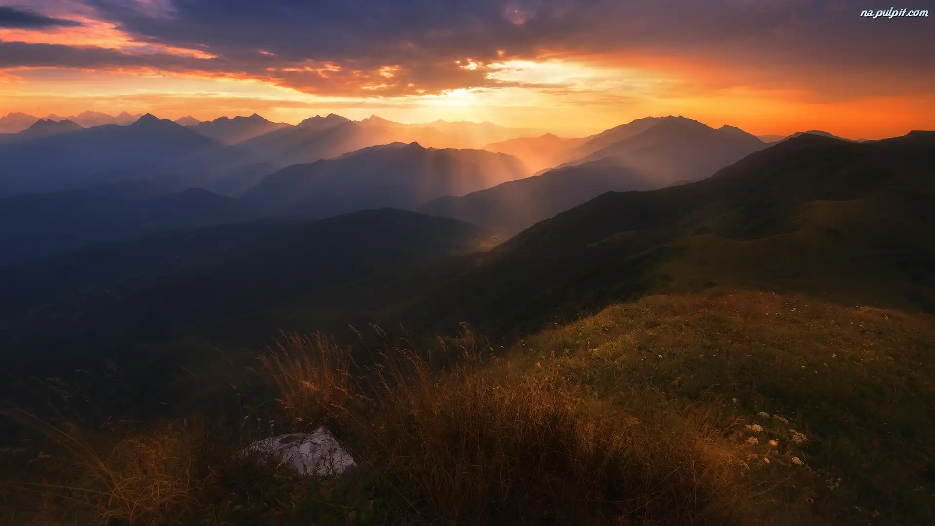 Chmury, Rośliny, Góry, Przebijające światło Na Pulpit