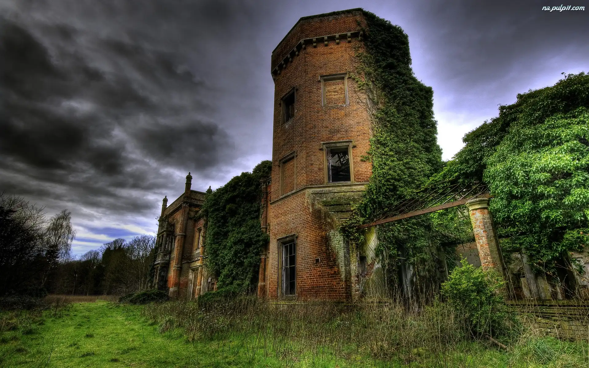 Chmury, Roślinami, Pokryte, Ruiny, Burzowe Na Pulpit