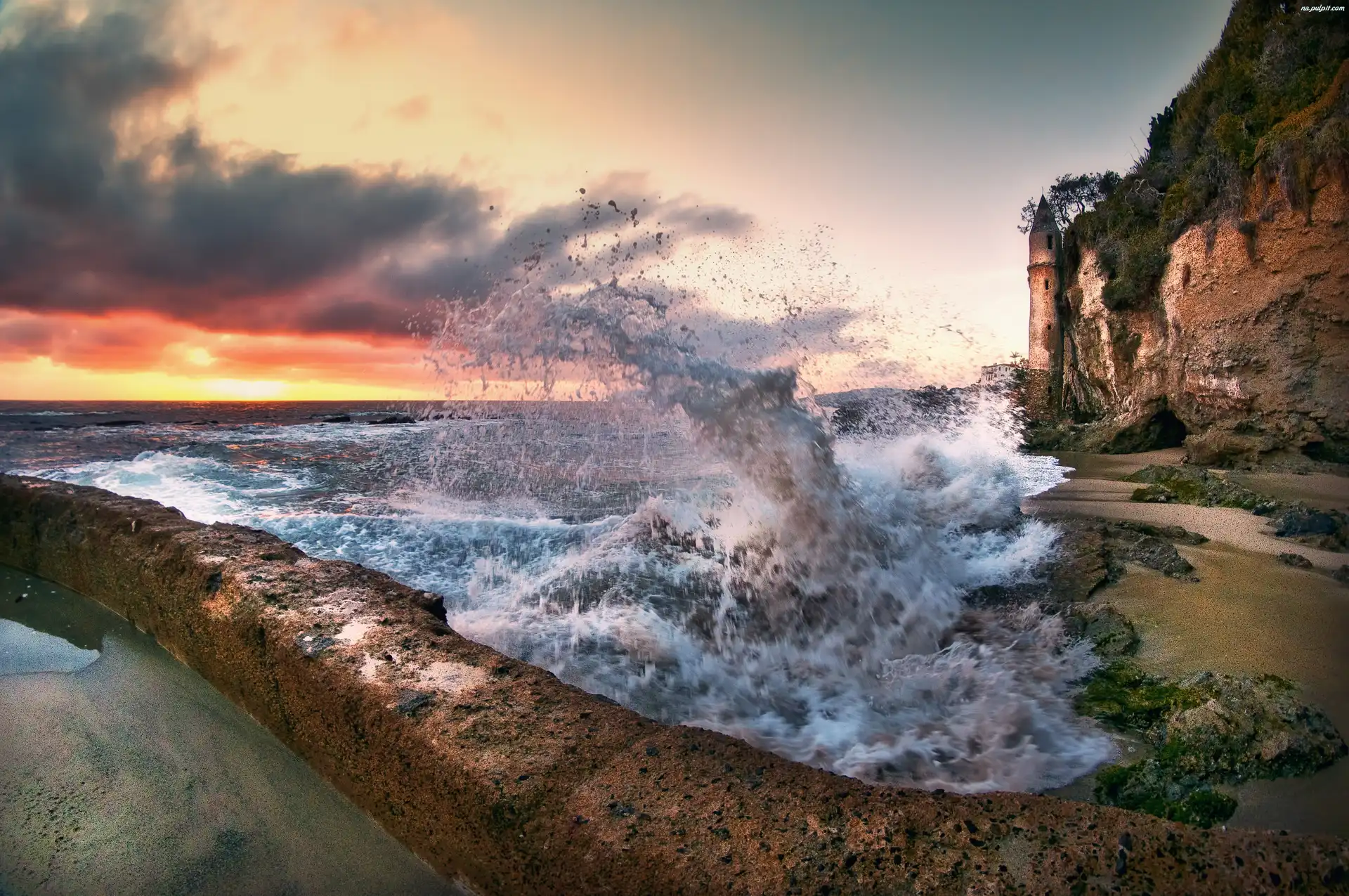 Chmury, Morze, Zamku, Ruiny, Fale Na Pulpit