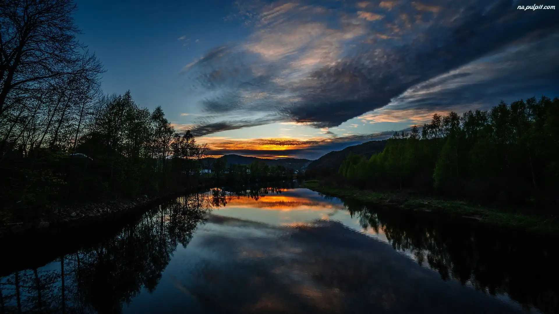 Chmury, Drzewa, Rzeka, Niebo Na Pulpit
