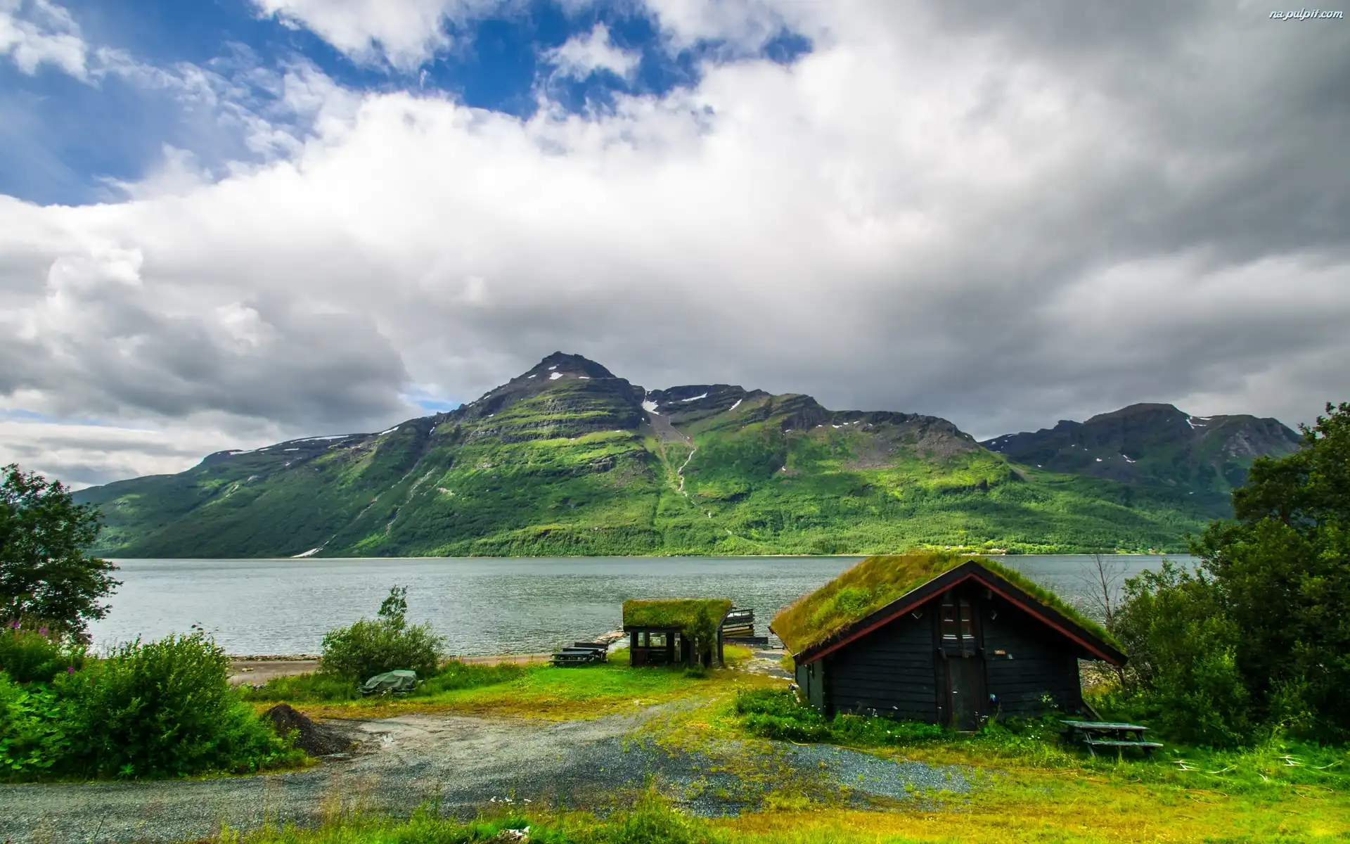 Chmury, Przystań, Góry, Rzeka, Domek Na Pulpit