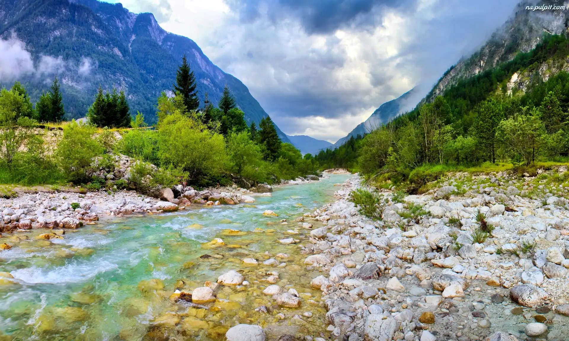 Chmury, Kamienie, Lasy, Rzeka, Góry