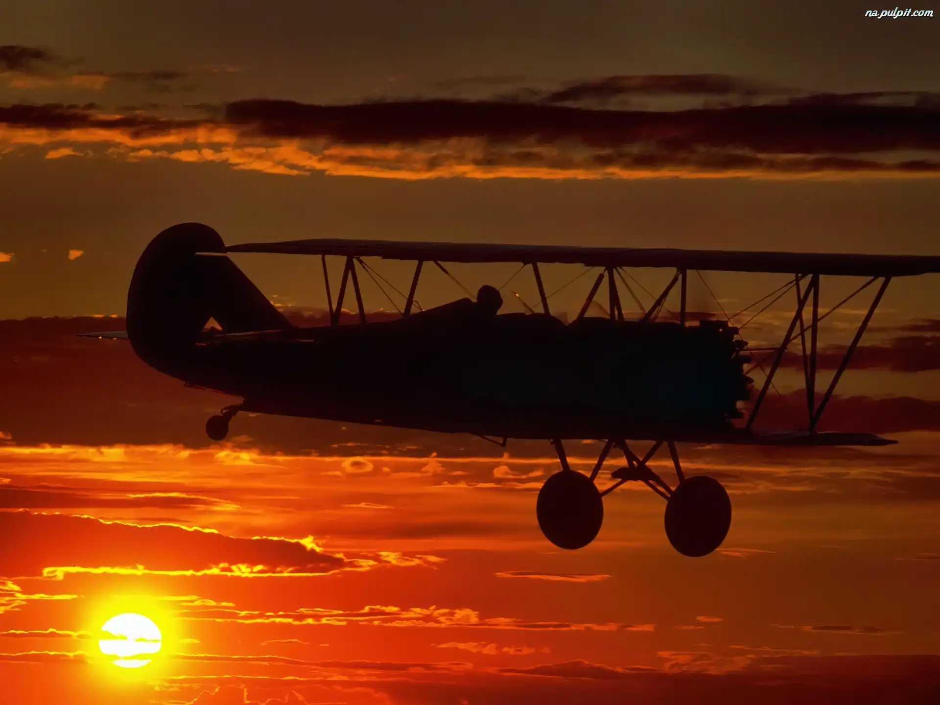 Chmury, Zachód, Dwupłatowiec, Samolot, Słońca Na Pulpit