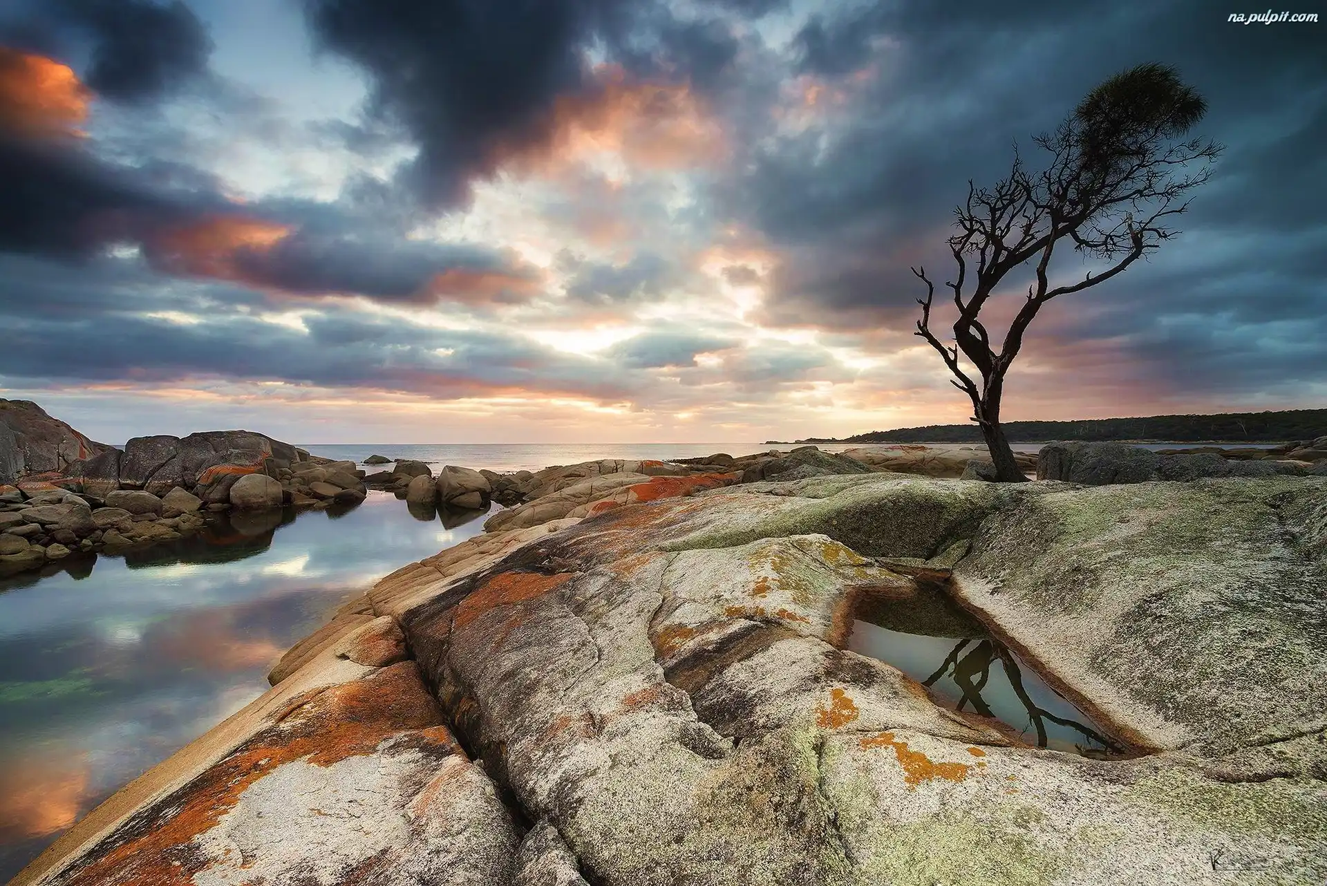 Chmury, Drzewo, Skały, Niebo Na Pulpit
