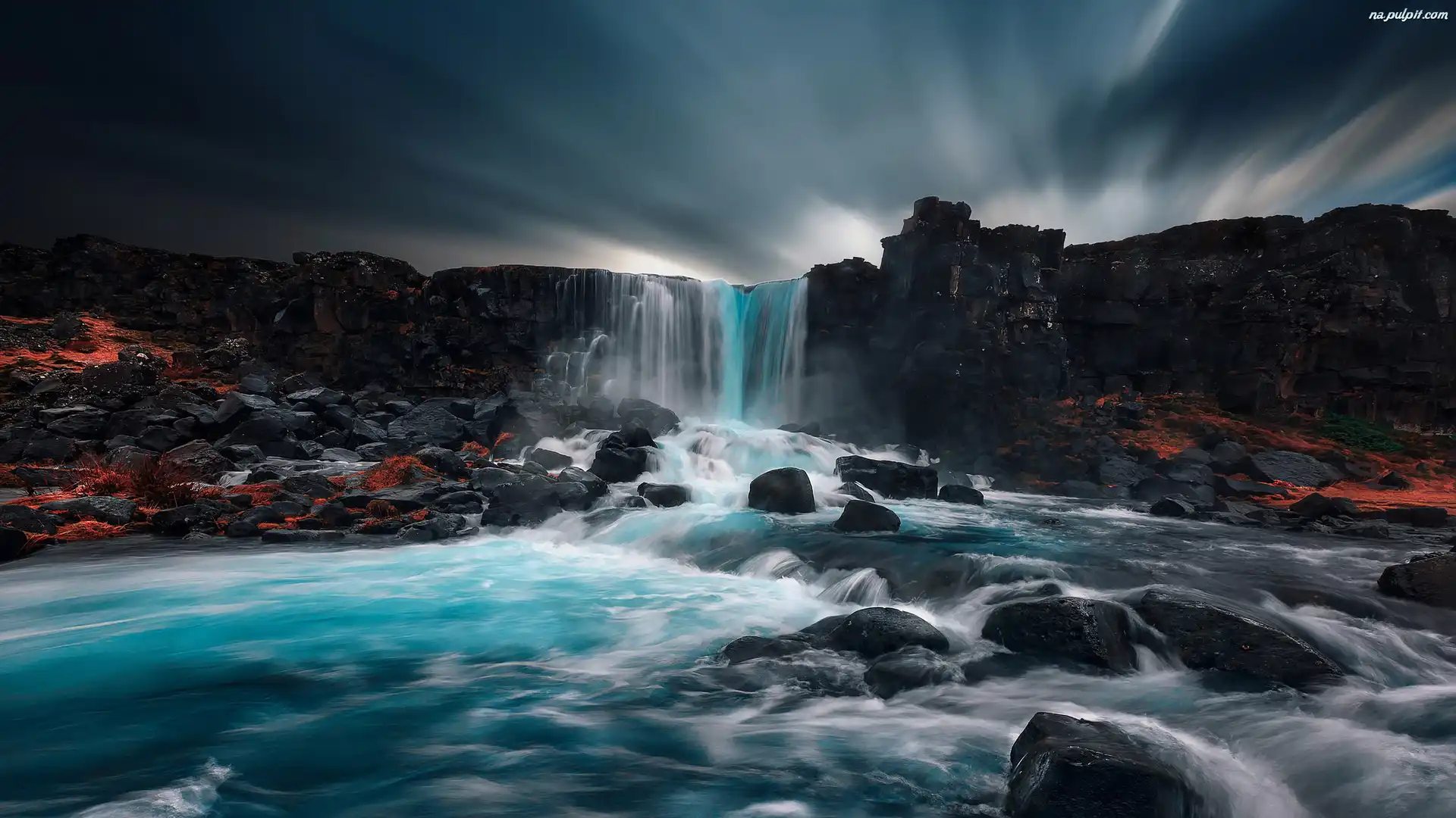 Chmury, Wodospad, Kamienie, Skały, Rzeka Na Pulpit