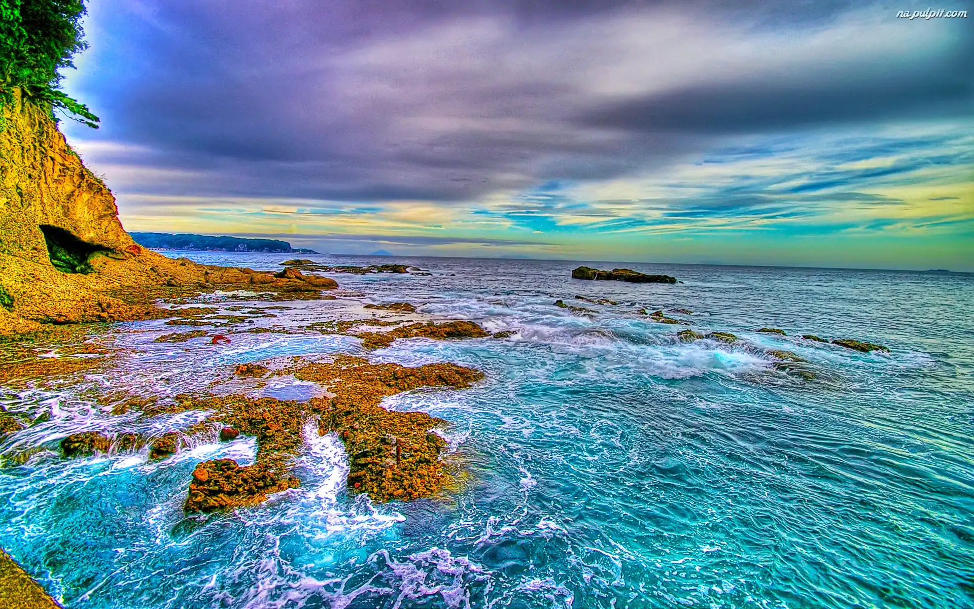 Skały, Chmury, Morze Na Pulpit