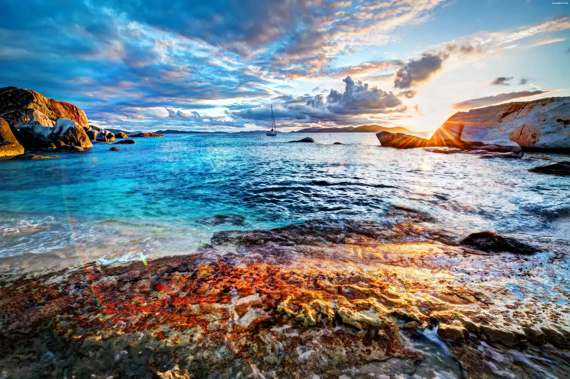 Skały, Chmury, Morze