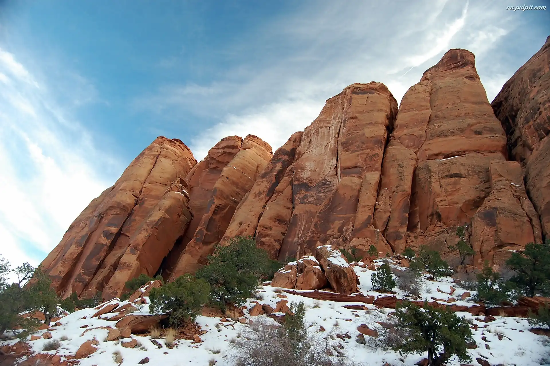 Chmury, Śnieg, Skały, Drzewa Na Pulpit