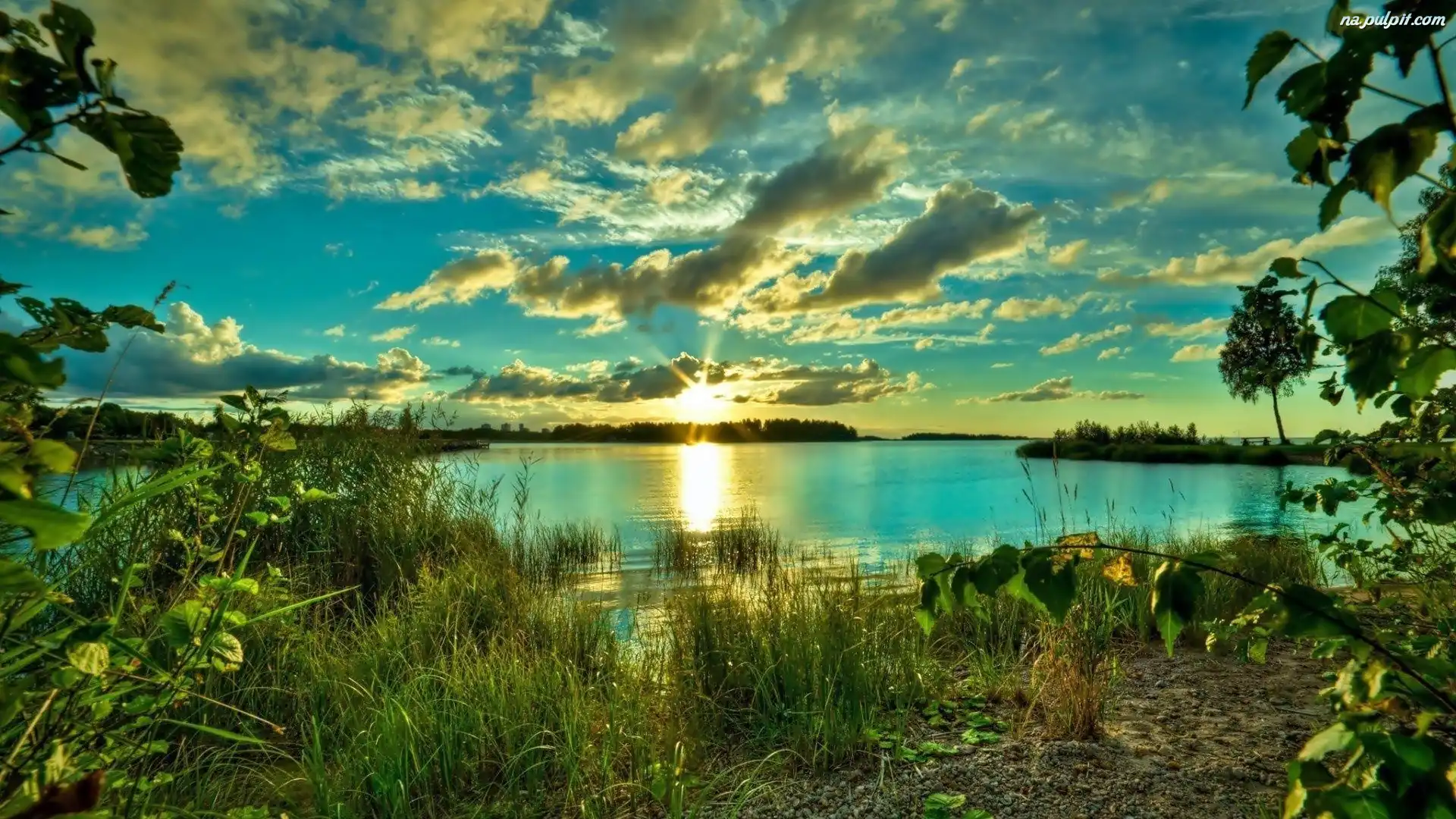 Chmury, Brzeg, Zachód Słońca, Jezioro Na Pulpit