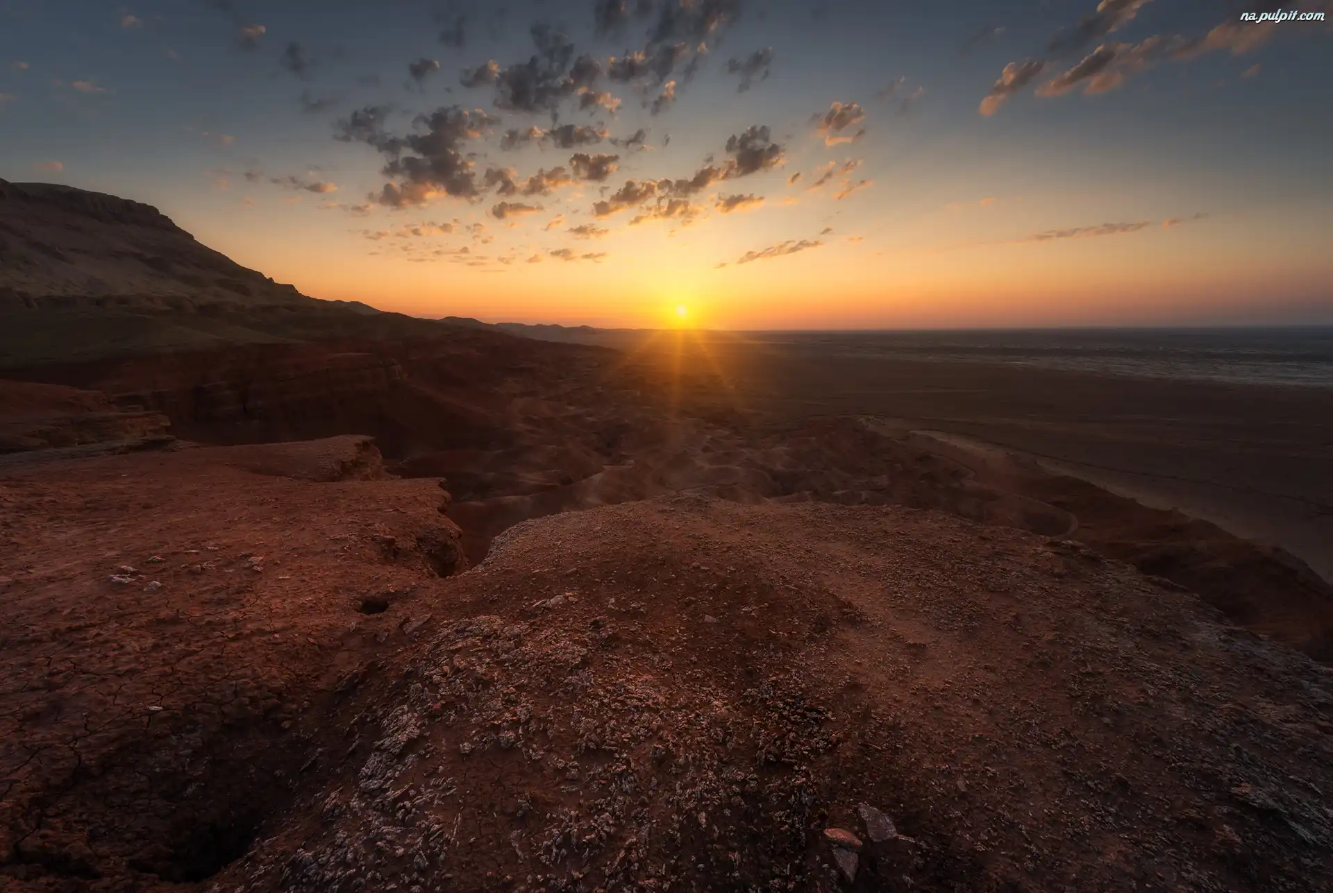 Chmury, Wzgórza, Zachód słońca, Kamienie Na Pulpit