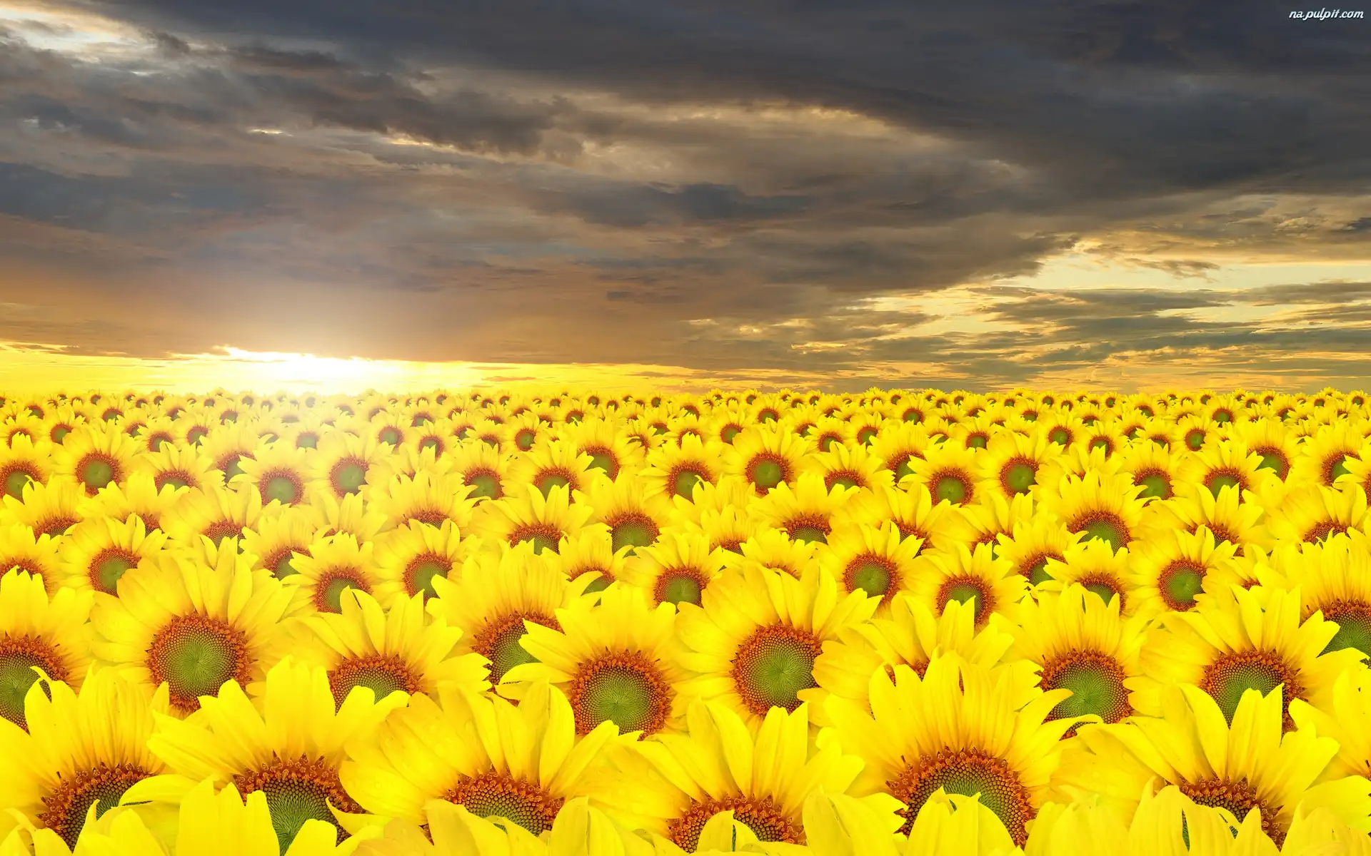 Chmury, Czarne, Słoneczniki, Niebo Na Pulpit