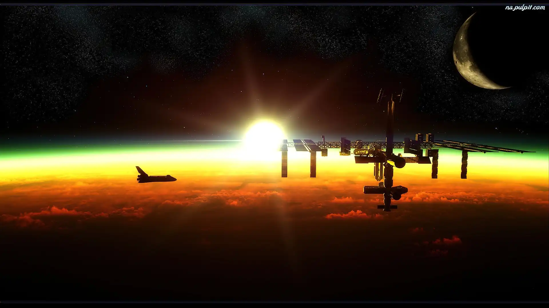 Chmury, Kosmiczna, Stacja, Słońce Na Pulpit
