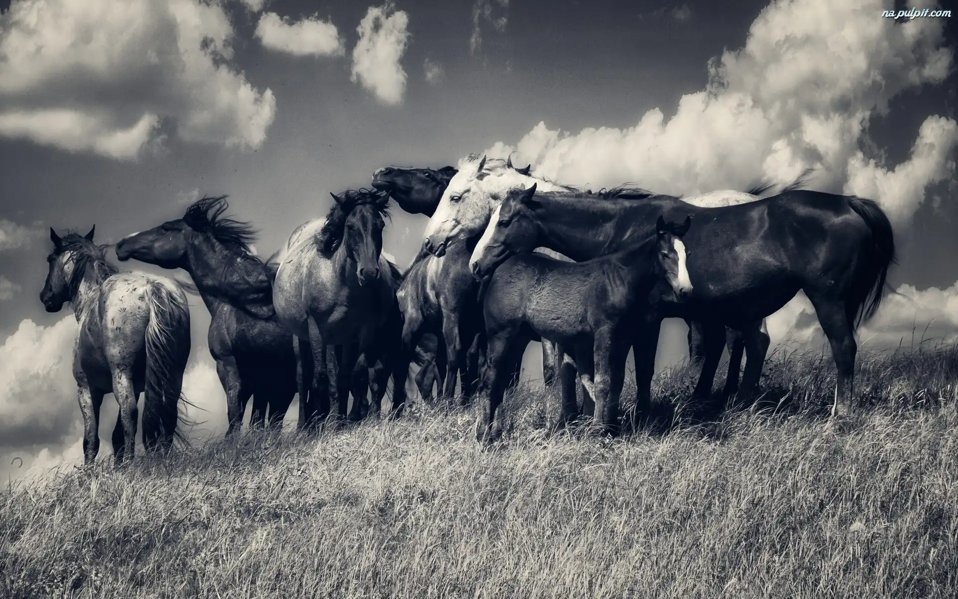 Chmury, Koni, Stado, Łąka Na Pulpit