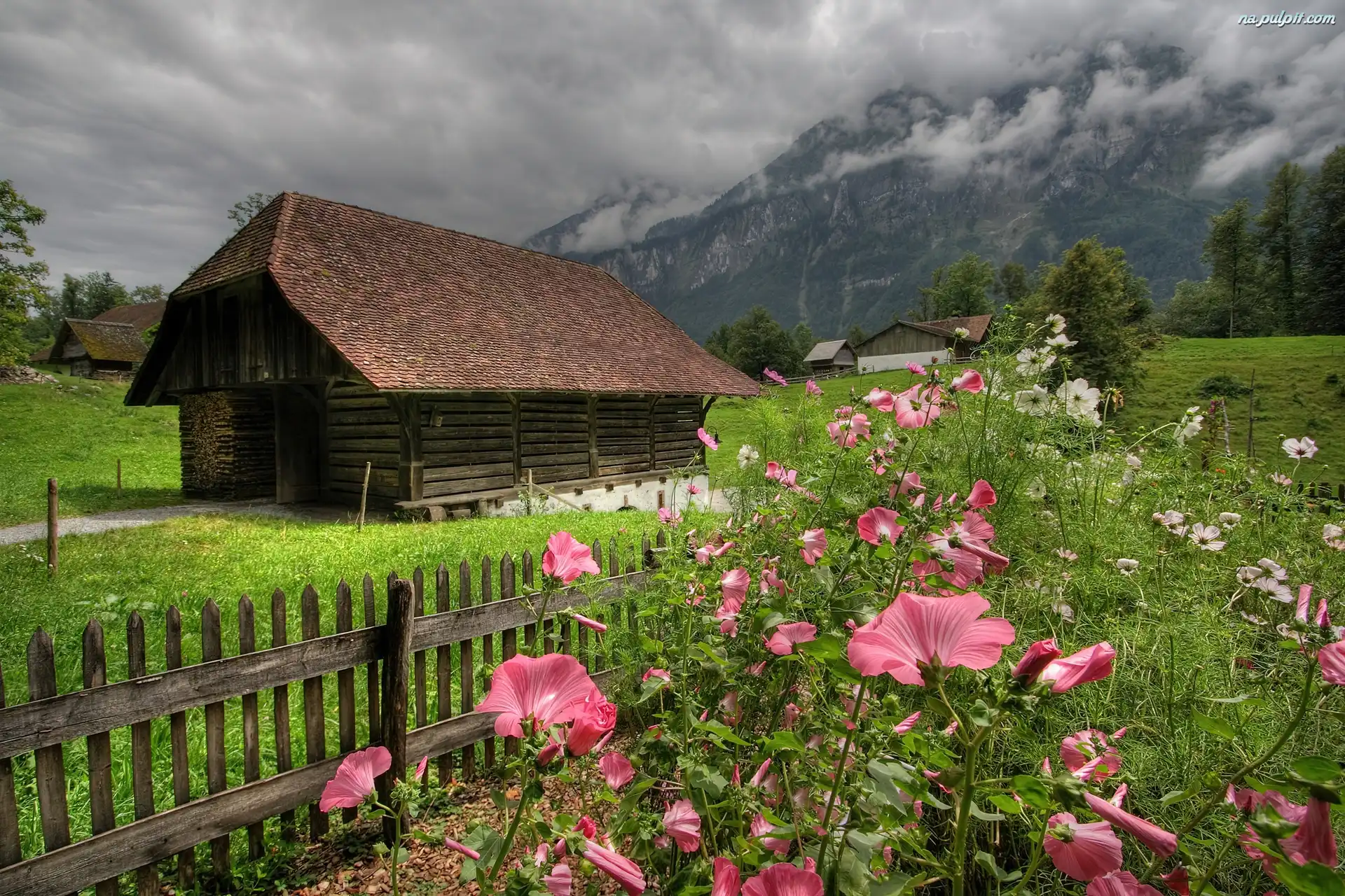 Chmury, Kwiaty, Szopa, Płotek Na Pulpit