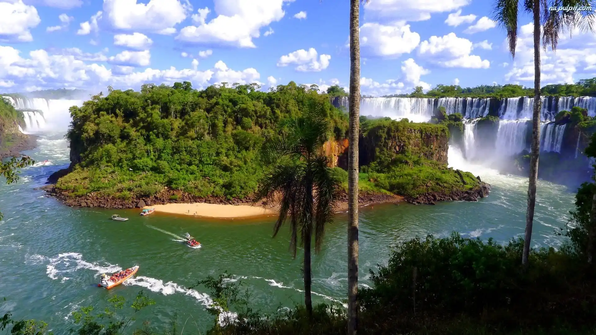 Chmury, Łódki, Iguazu, Wodospady, Drzewa Na Pulpit
