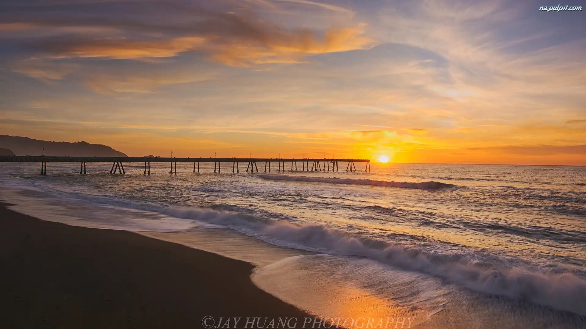 Chmury, Morze, Fale, Molo, Wschód słońca Na Pulpit