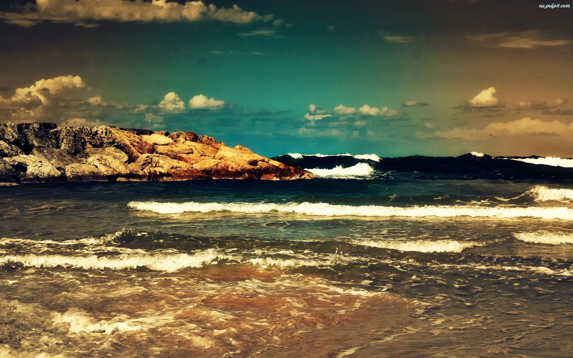 Chmury, Morze, Wzburzone, Fale Na Pulpit
