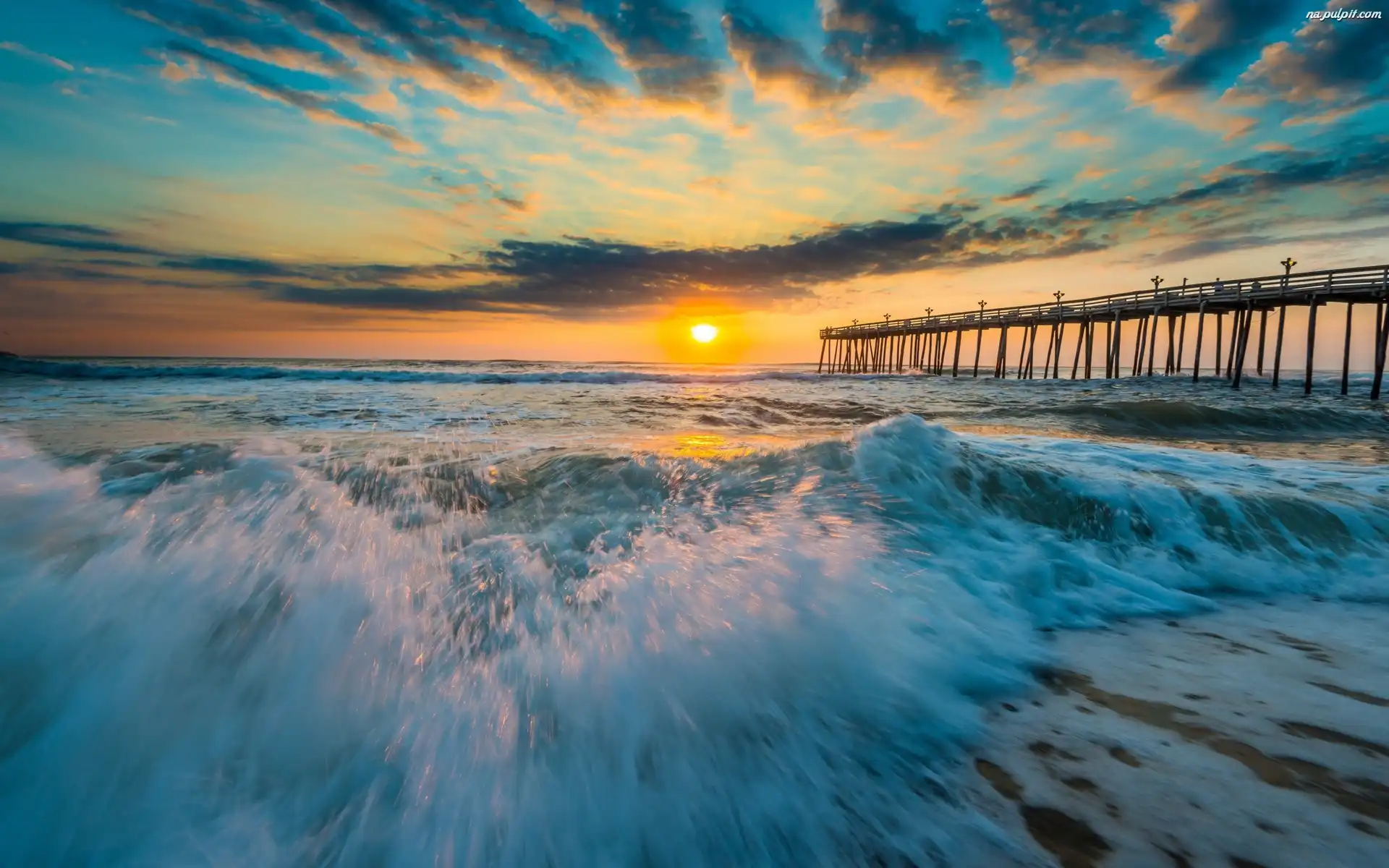 Chmury, Molo, Fale, Morze, Zachód Słońca Na Pulpit