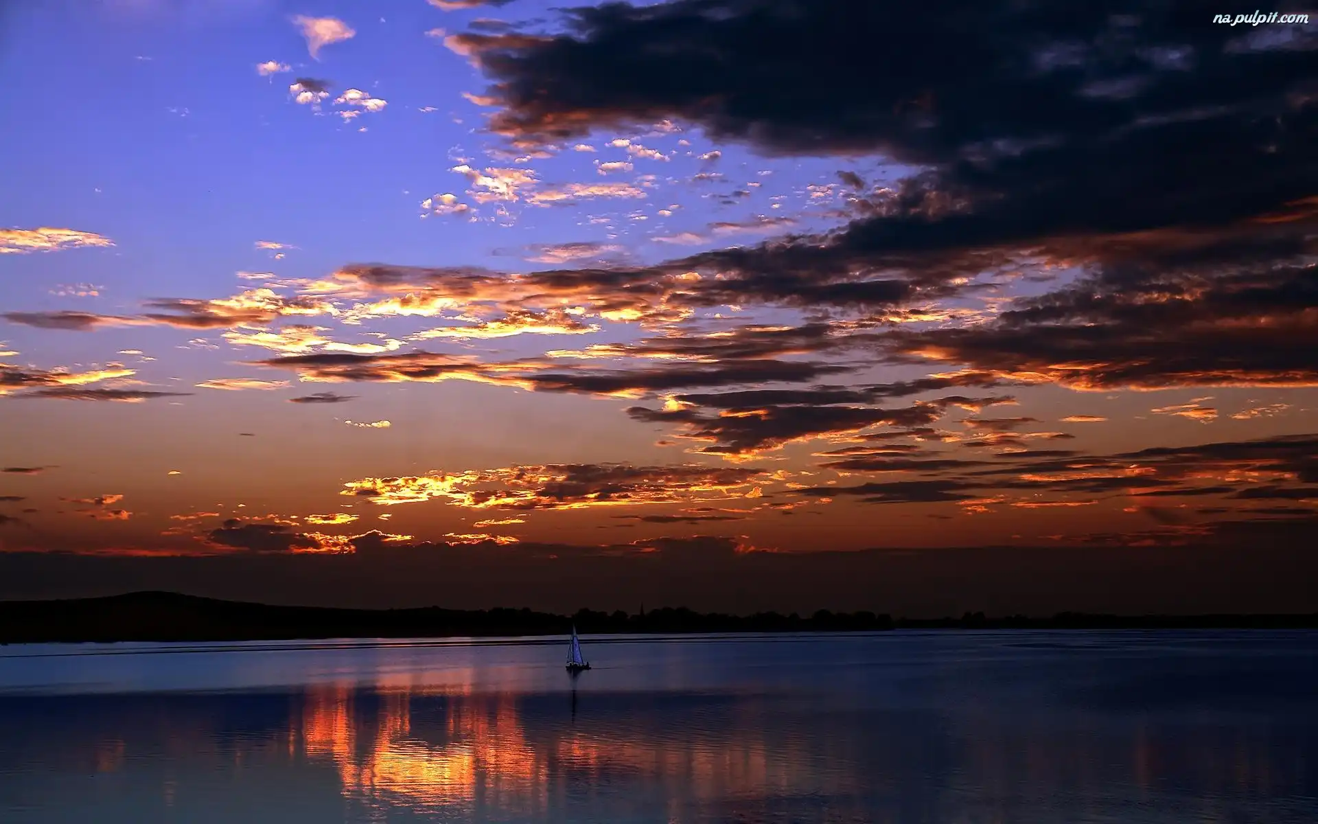 Żaglówka, Zachód, Jezioro, Chmury, Slońca Na Pulpit