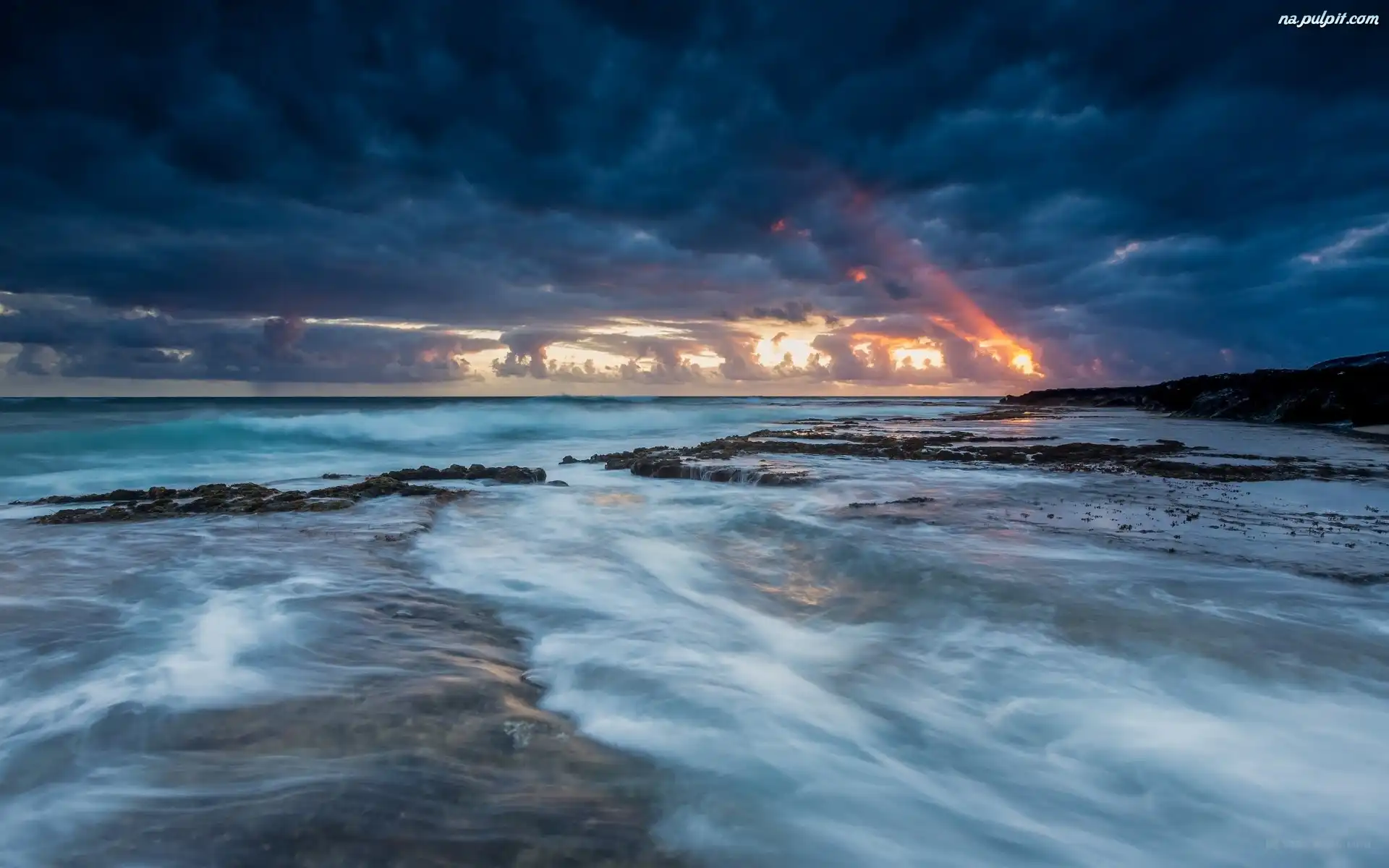 Chmury, Fale, Morze, Zachód Słońca Na Pulpit
