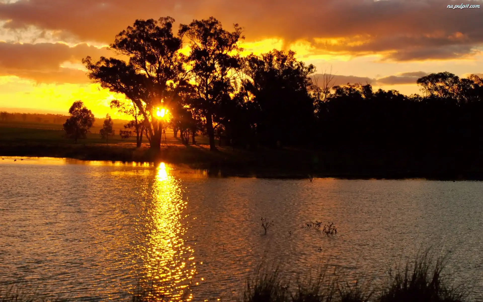 Chmury, Rzeka, Zachód Słońca Na Pulpit