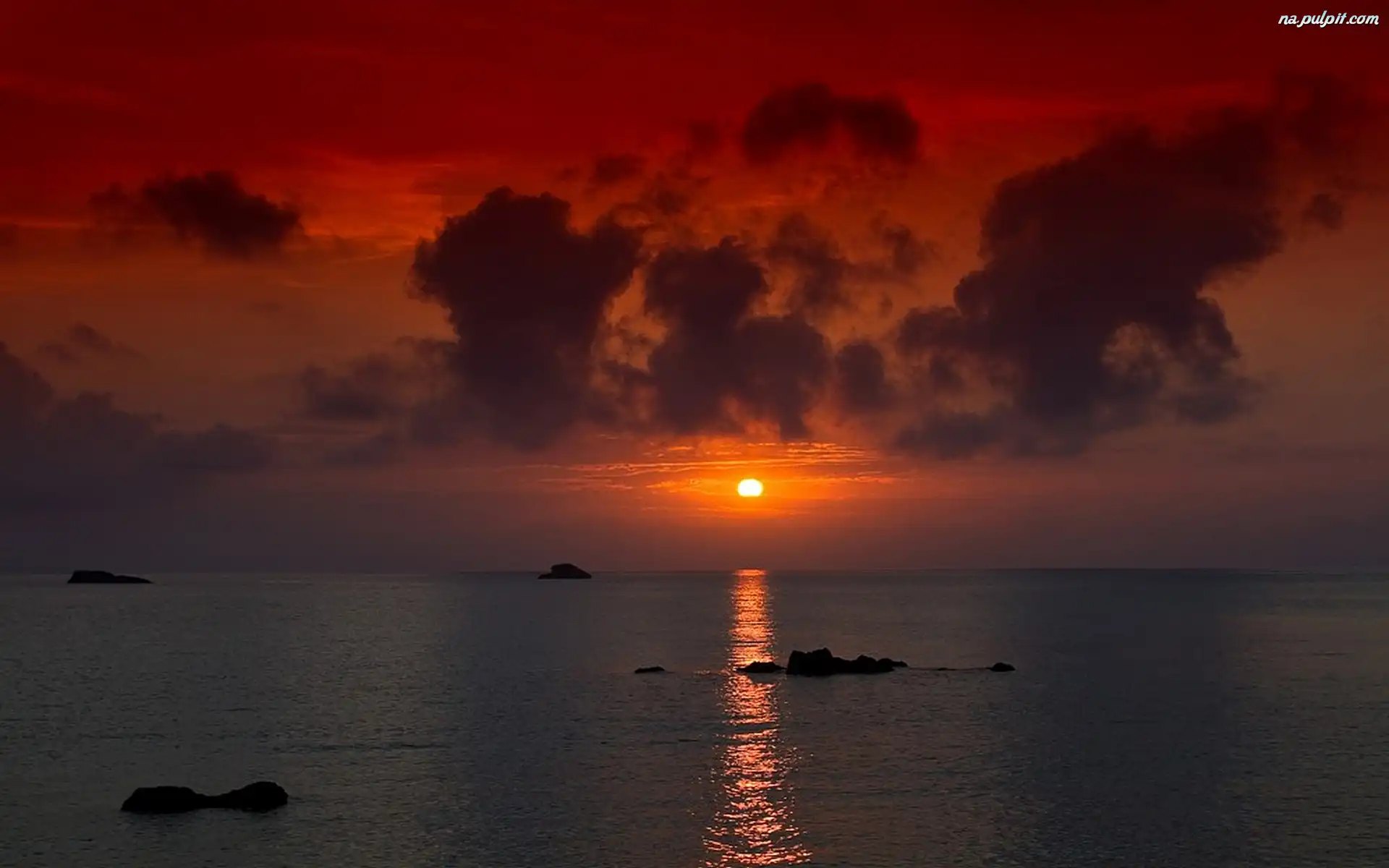 Chmury, Słońca, Zachód, Morze Na Pulpit