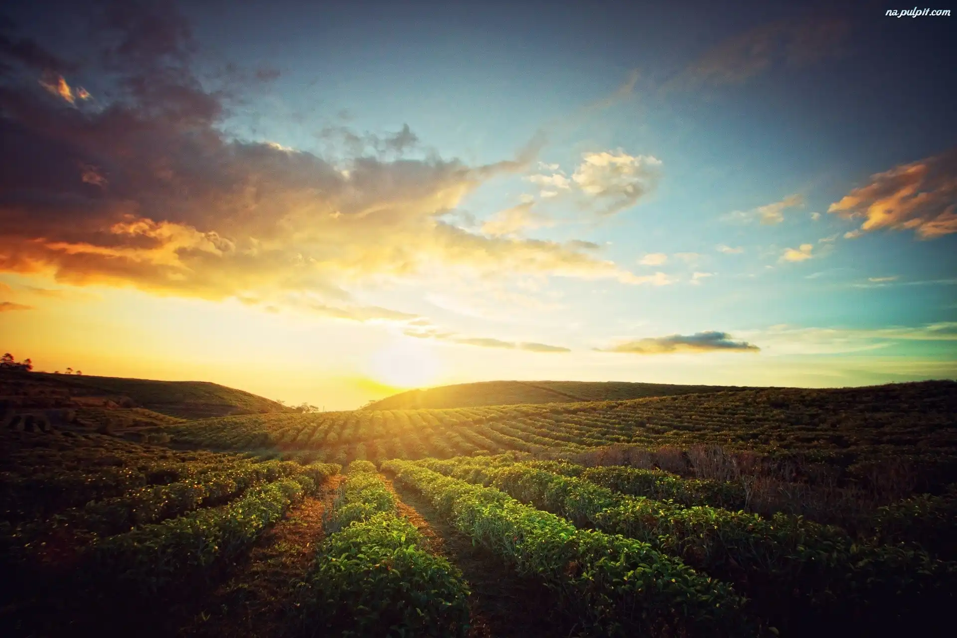 Chmury, Słońca, Zachód, Pola Na Pulpit