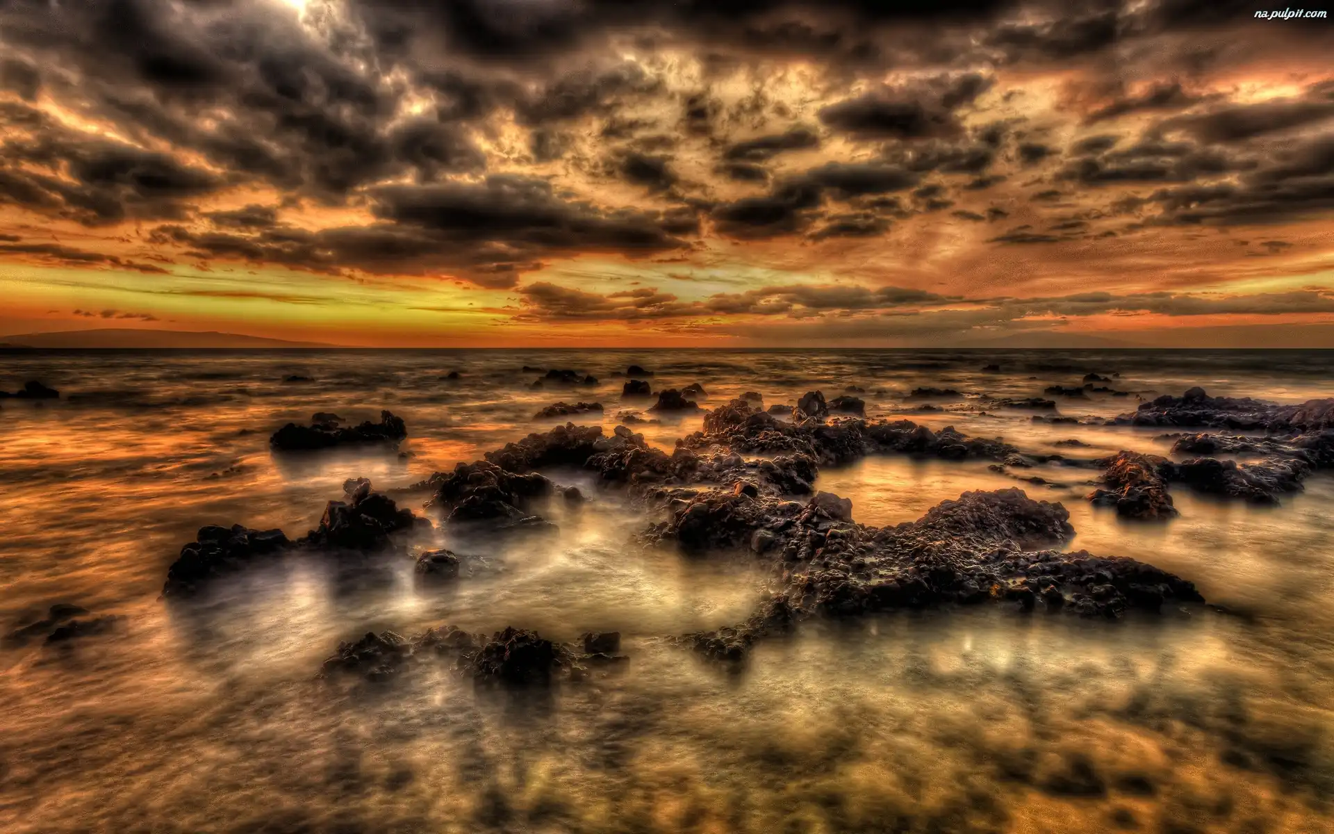 Chmury, Skałki, Słońca, Zachód, Morze Na Pulpit