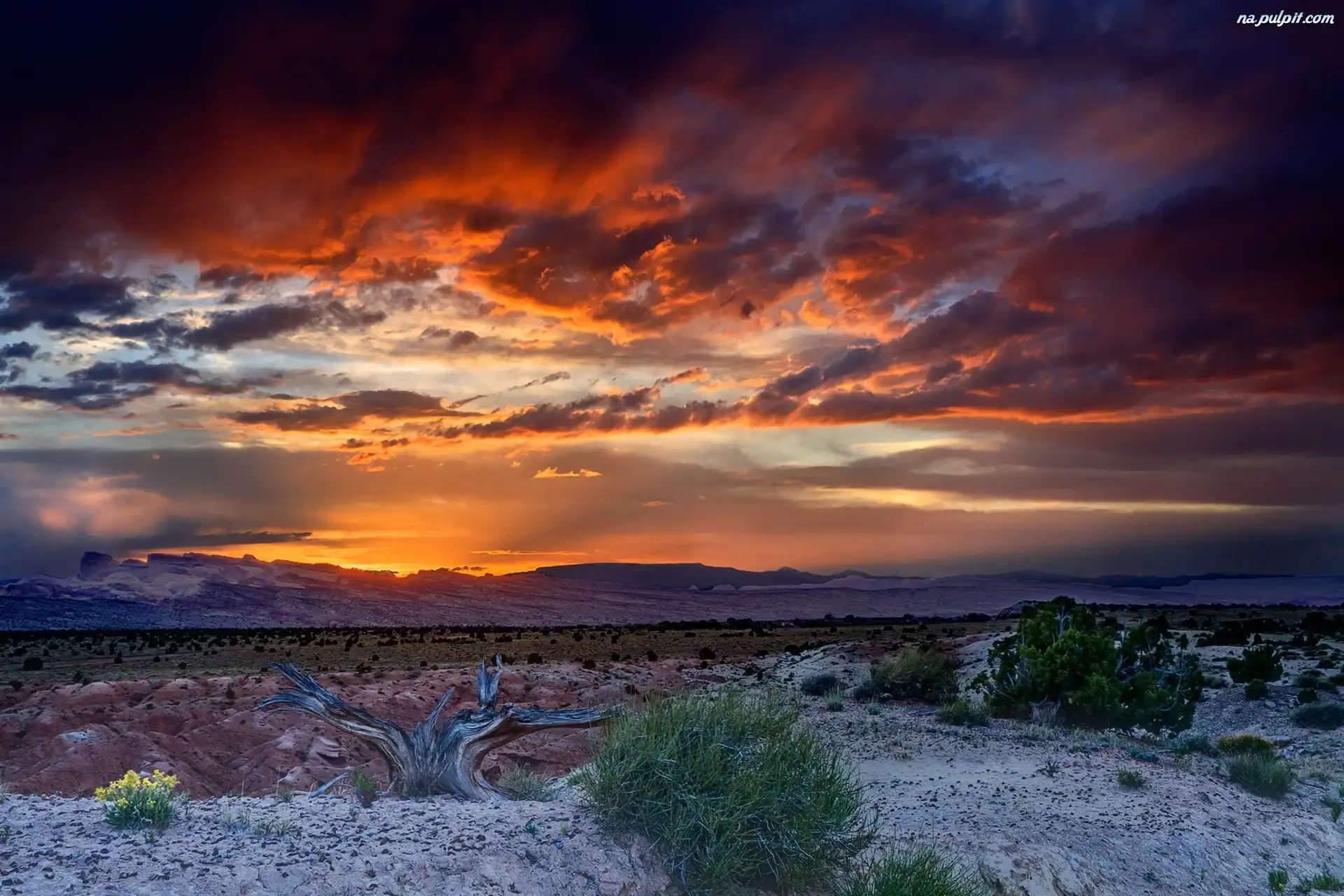 Chmury, Wzgórza, Zachód Słońca Na Pulpit