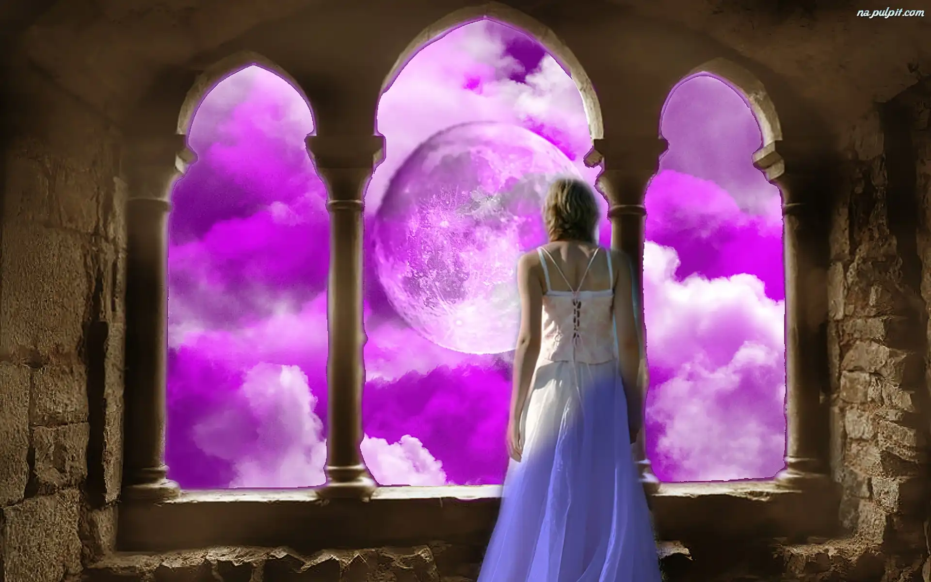 Chmury, Kobieta, Zamek, Okno