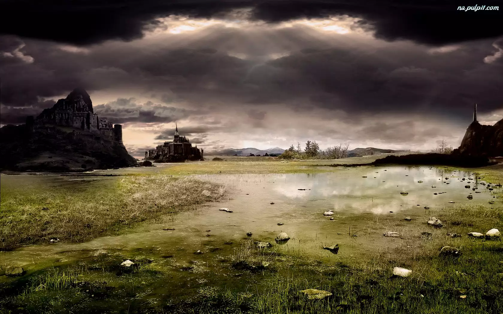 Chmury, Łąka, Wzgórza, Zamki, Czarne