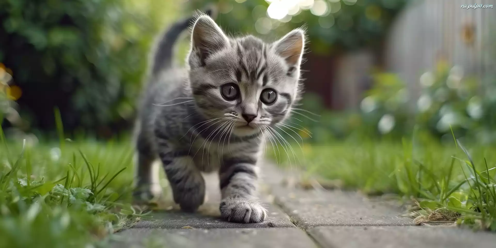 Trawa, Kot, Kotek, Chodnik, Szary, Grafika AI Na Pulpit