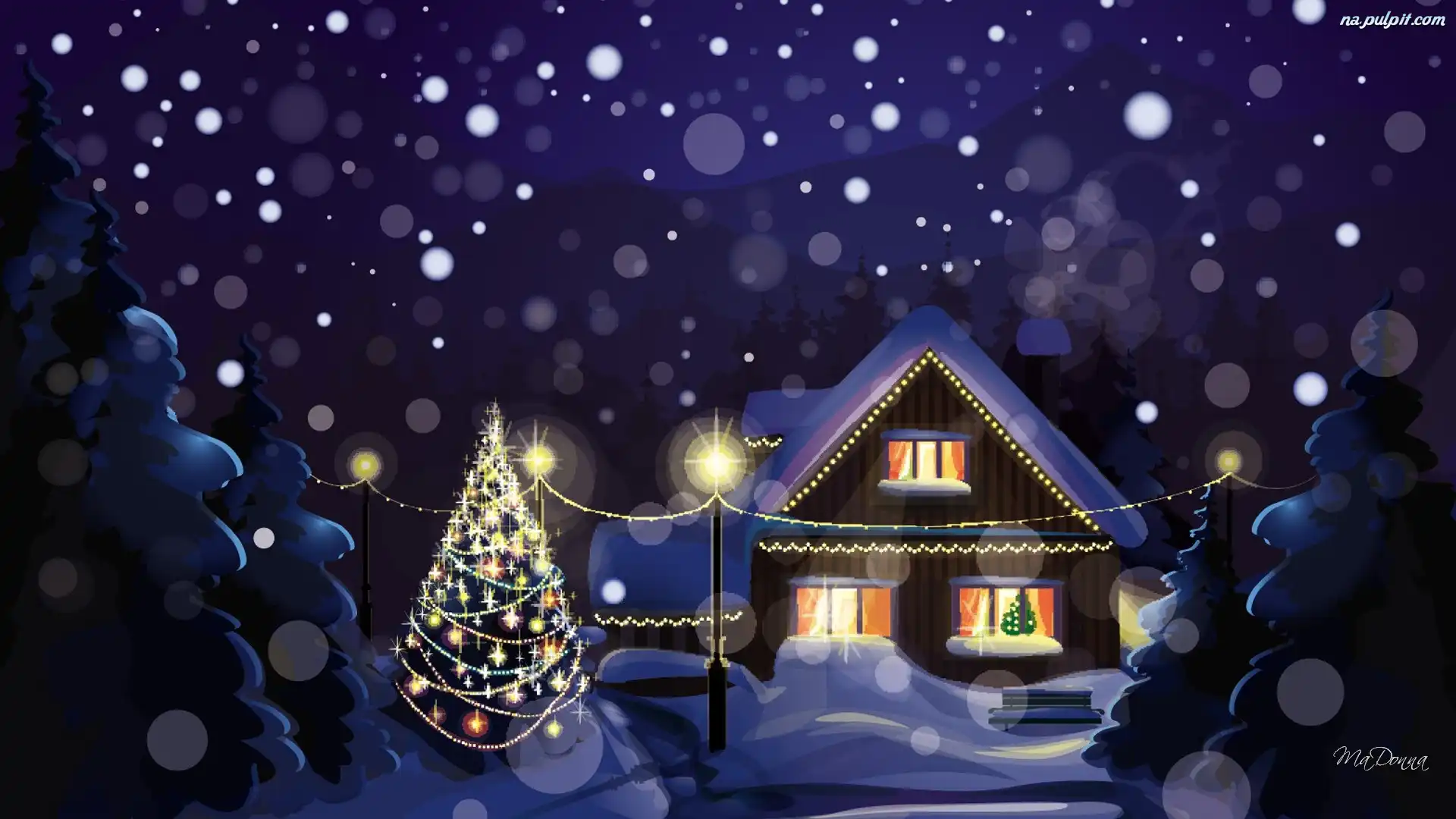 Choinka, Narodzenie, Grafika, Zima, Dom, Boże Na Pulpit