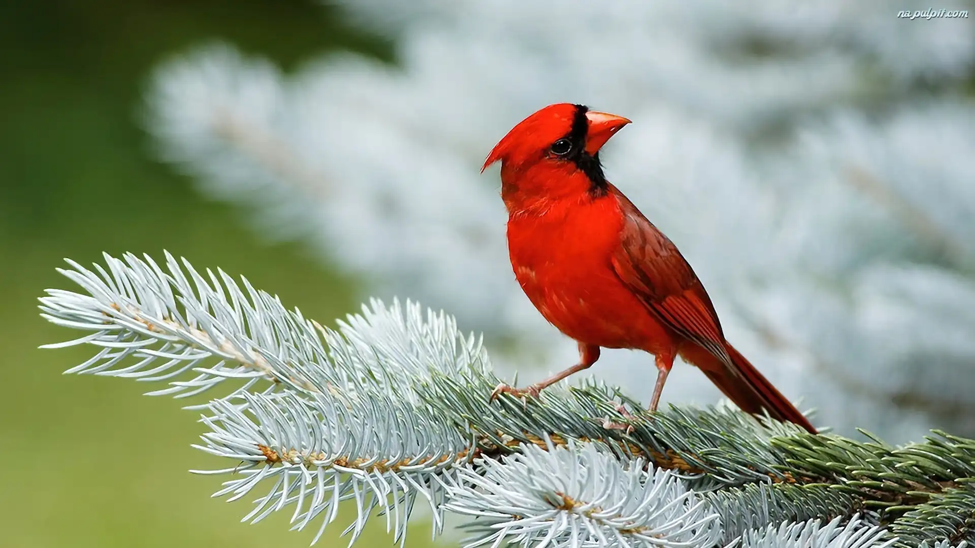 Choinka, Kardynałek, Drzewo, Samczyk Na Pulpit