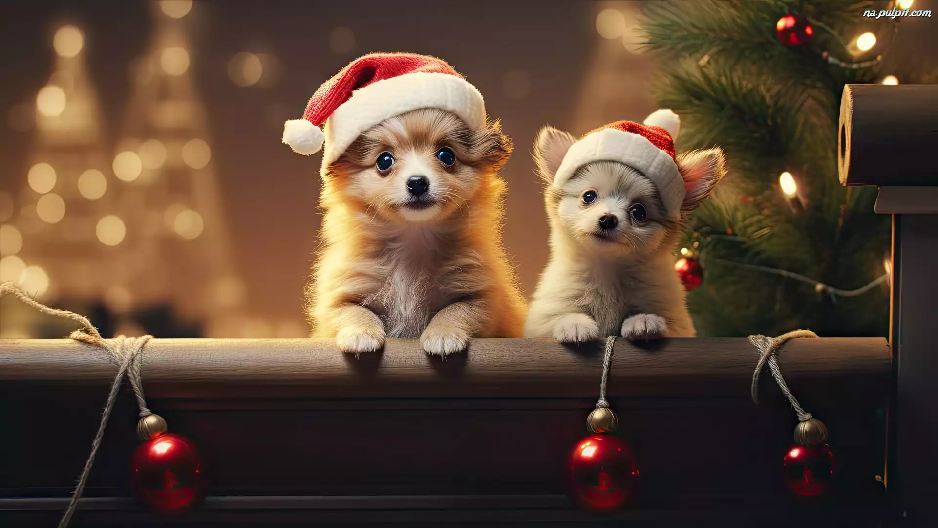 Dwa, Psy, Czapki, Choinka Na Pulpit