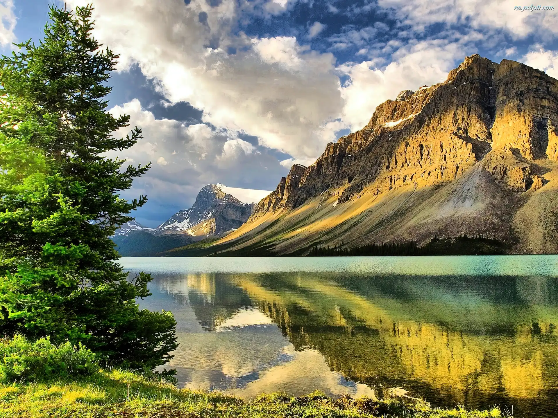 Choinka, Chmury, Góry, Jezioro Na Pulpit