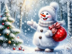 Śnieg, Zima, Worek, Choinka, Bałwanek, Las Na Pulpit