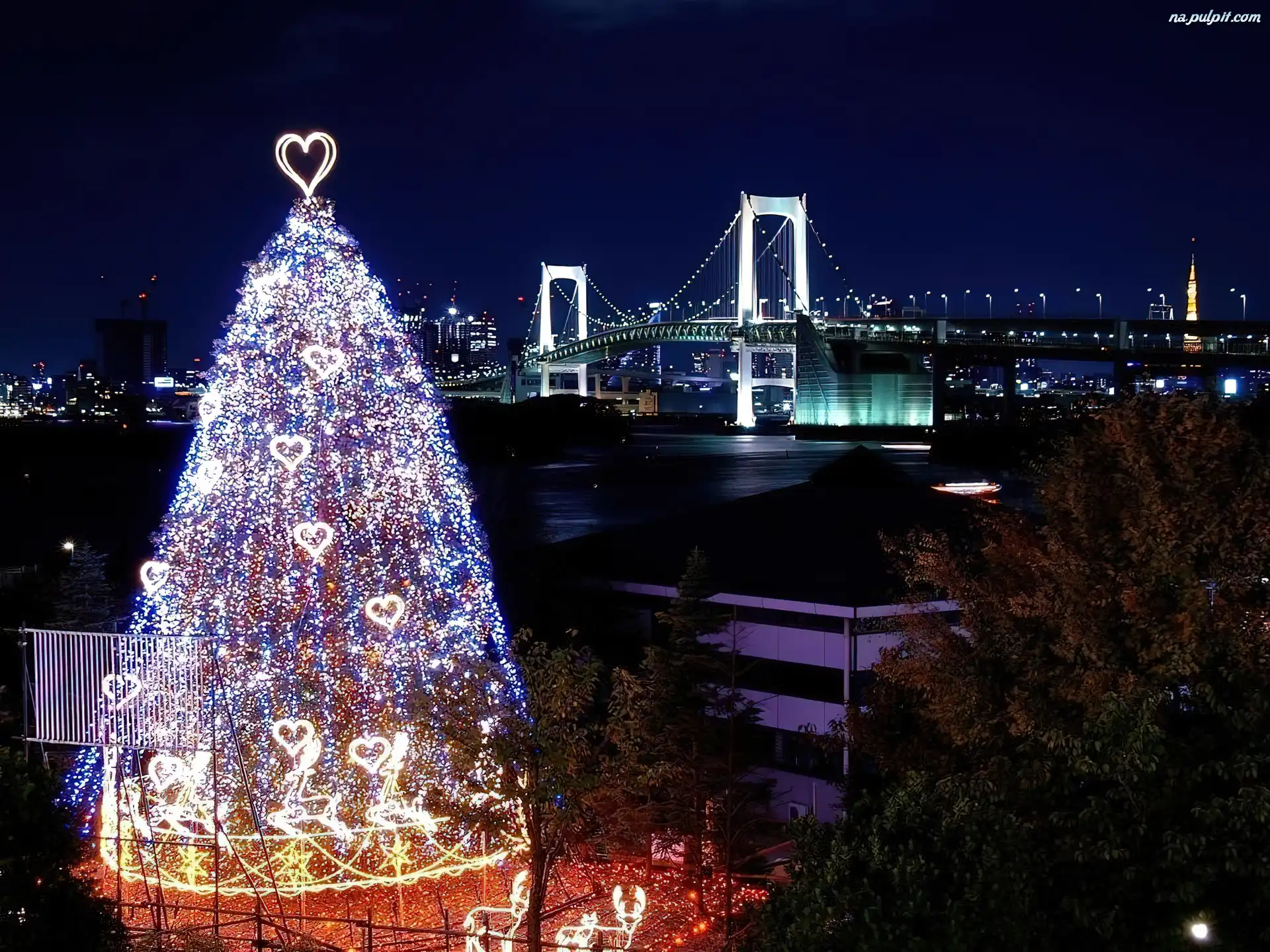 Kot, Prezent Renifery, Mikołaj, Sanie Miasto, Miami, Floryda, Zmierzch Most, Japonia, Kioto Opera w Sydney, Australia, Sydney Hradczany, Most, Praga, Karola Przepaść, Most Choinka, Gwiazdki Most, Miami, Floryda, Światła Noc, Bruklinski, Most, Światła Most Anglia, Most Rzeka, Francja, Most Prezenty, Diabeł, Tasmański
