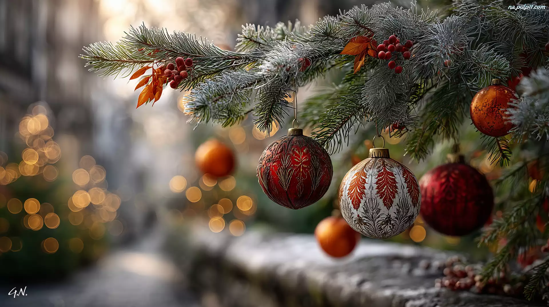 Grafika, Boże Narodzenie, Choinka, Święta, Bombki, AI Na Pulpit